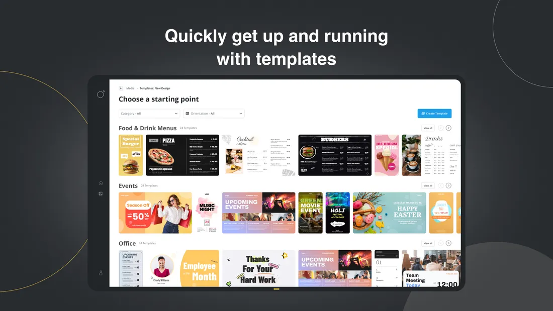 AlastairWe've recently released support for creating your own content with our signage editor. To go with it we released a bunch of templates so you can get up and running even more quickly. Feel free to give it a try.