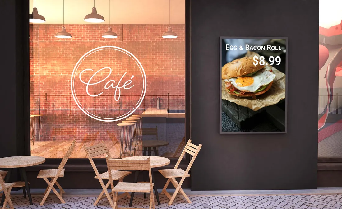 AlastairDigital signage is a great way to grab your customers' attention. Read on for a few ideas you can do to help boost your cafe’s sales. Draw in foot traffic If you’ve got a high amount of foot traffic outside your cafe, why not place a digital sign in a prominent position in your window. Passers by wo