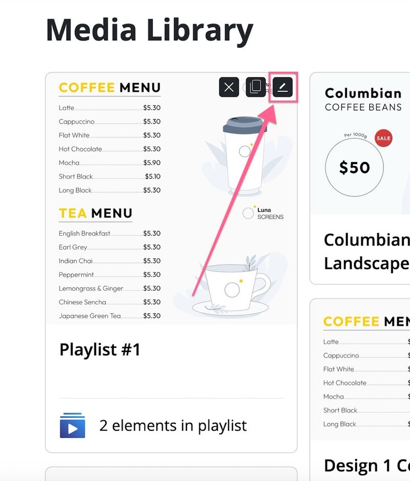 Let's go back to our media library and press the edit button on our playlist.