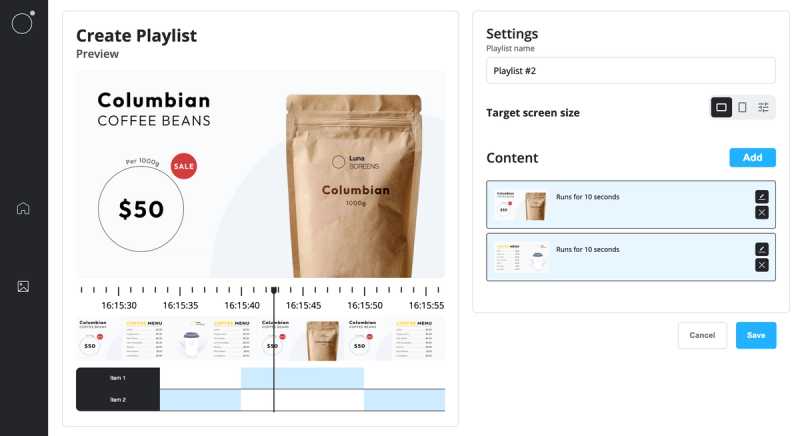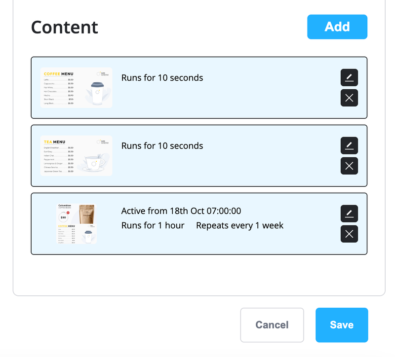 Hit 'Save' and now you're playlist is ready to go, just select it when selecting content for a screen.