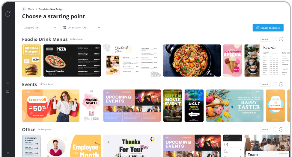 From screen previews, auto boot on start up, playlists, templates and more, see what our platform has to offer.